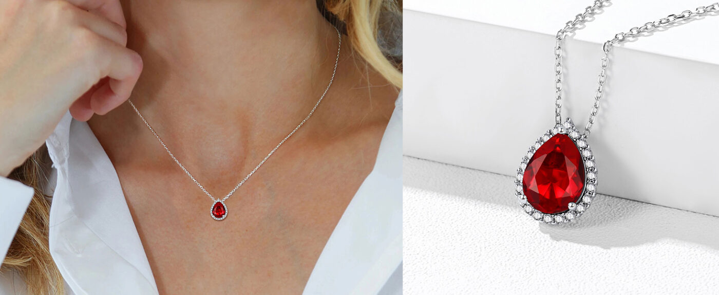 Elegant S925 Silver Waterdrop Garnet January Birthstone Necklace