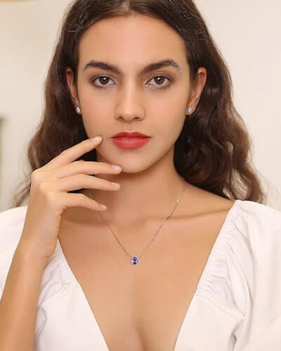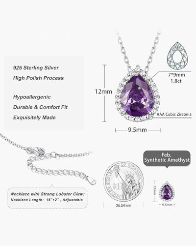 925 Sterling Silver Pear Birthstone Necklace for mom Birthday Gift