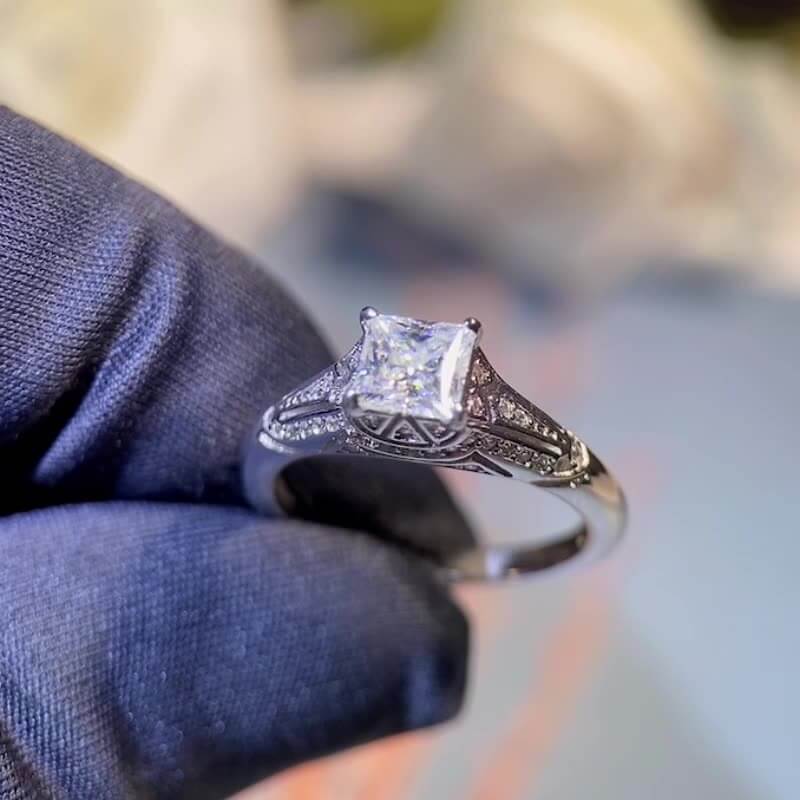 Princess Cut Moissanite Ring with 925 Sterling Silver