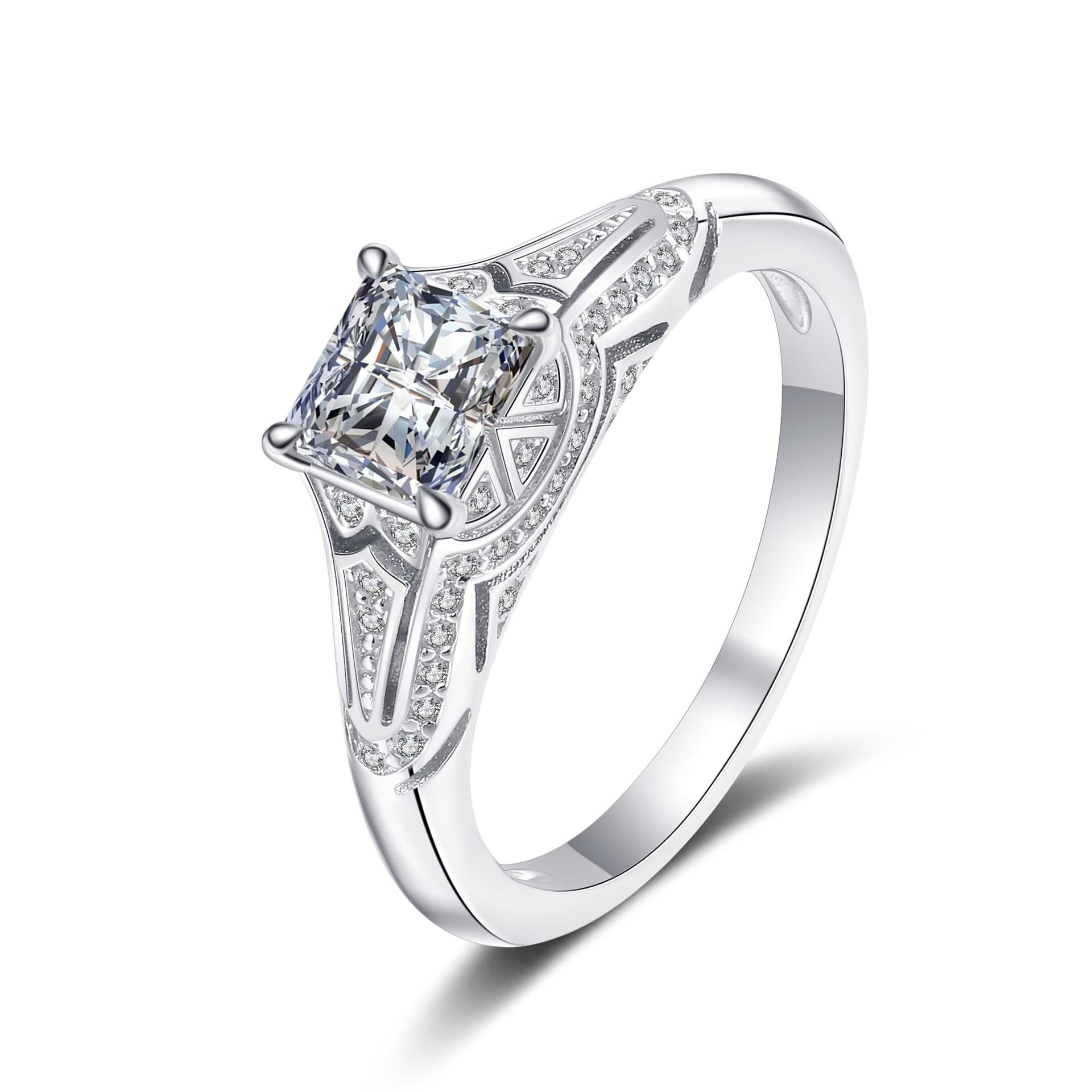 S925 Silver 2 Carat Square Moissanite Engagement Stackable Ring