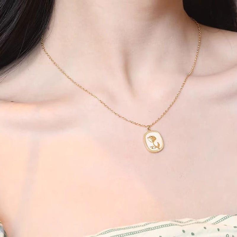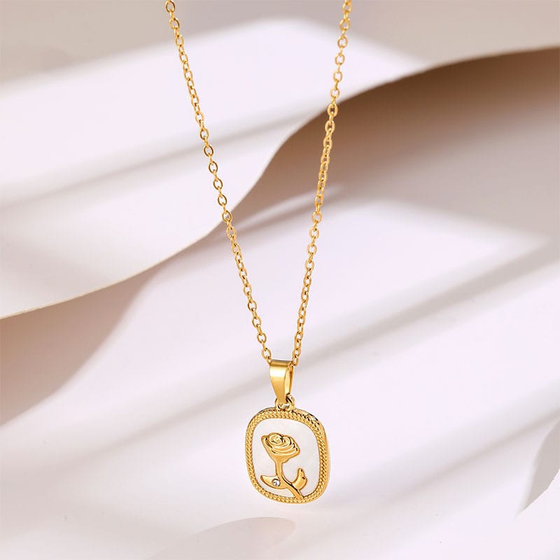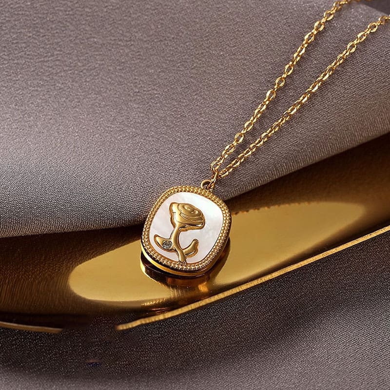 Mother-of-Pearl Rose Pendant Gold Choker Necklace