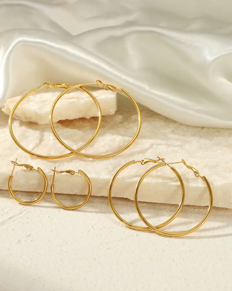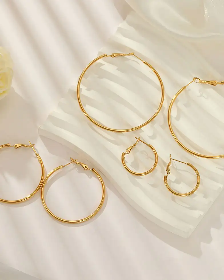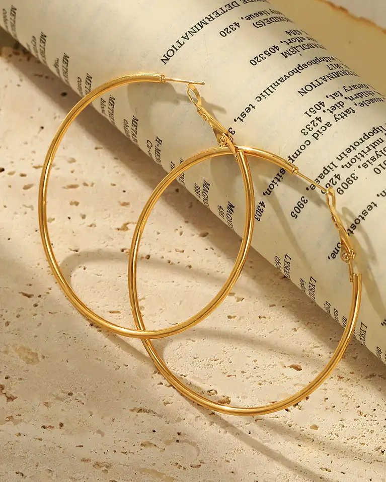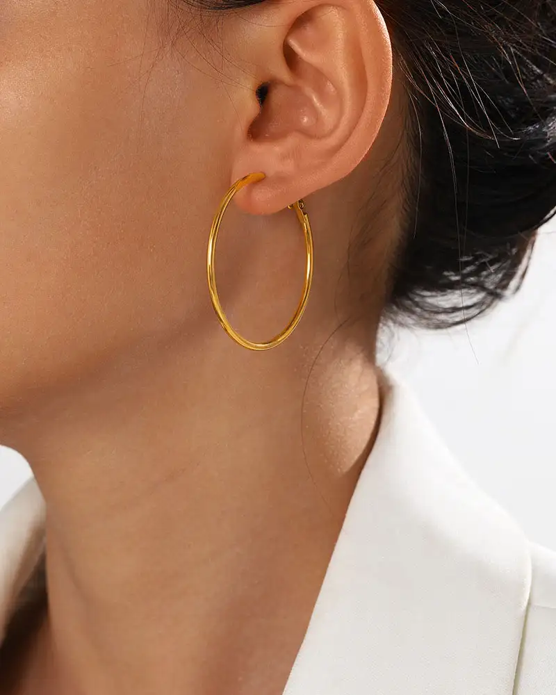 Simple 18K Gold Plated Stainless Steel Large Hoop Earrings