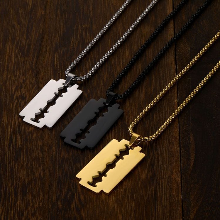 Stainless Steel Men’s Necklaces with Razor Blade Pendant