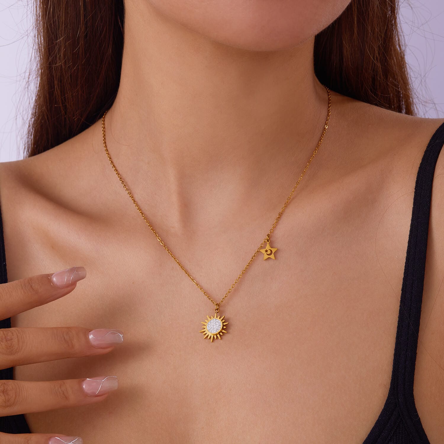 18k Gold plated Sun Heart Thick Stainless Steel Chain Wholesale