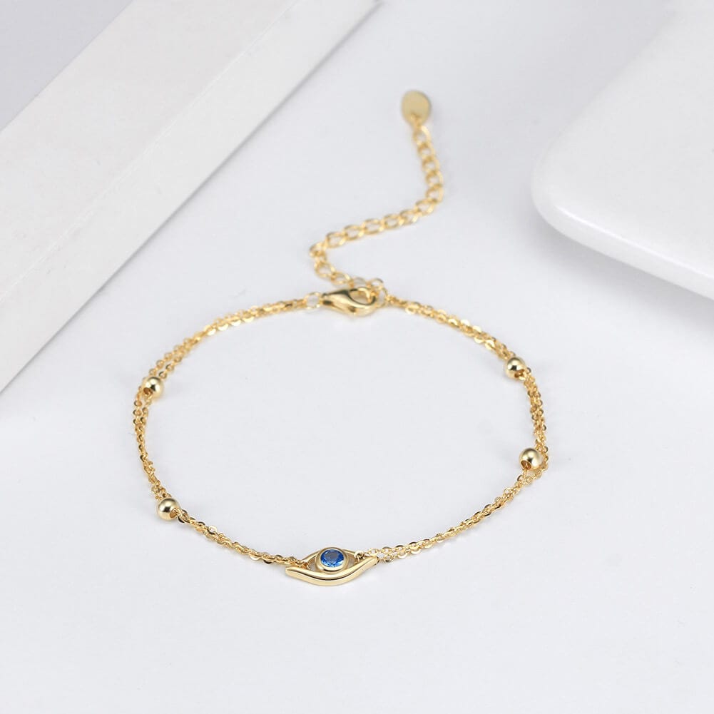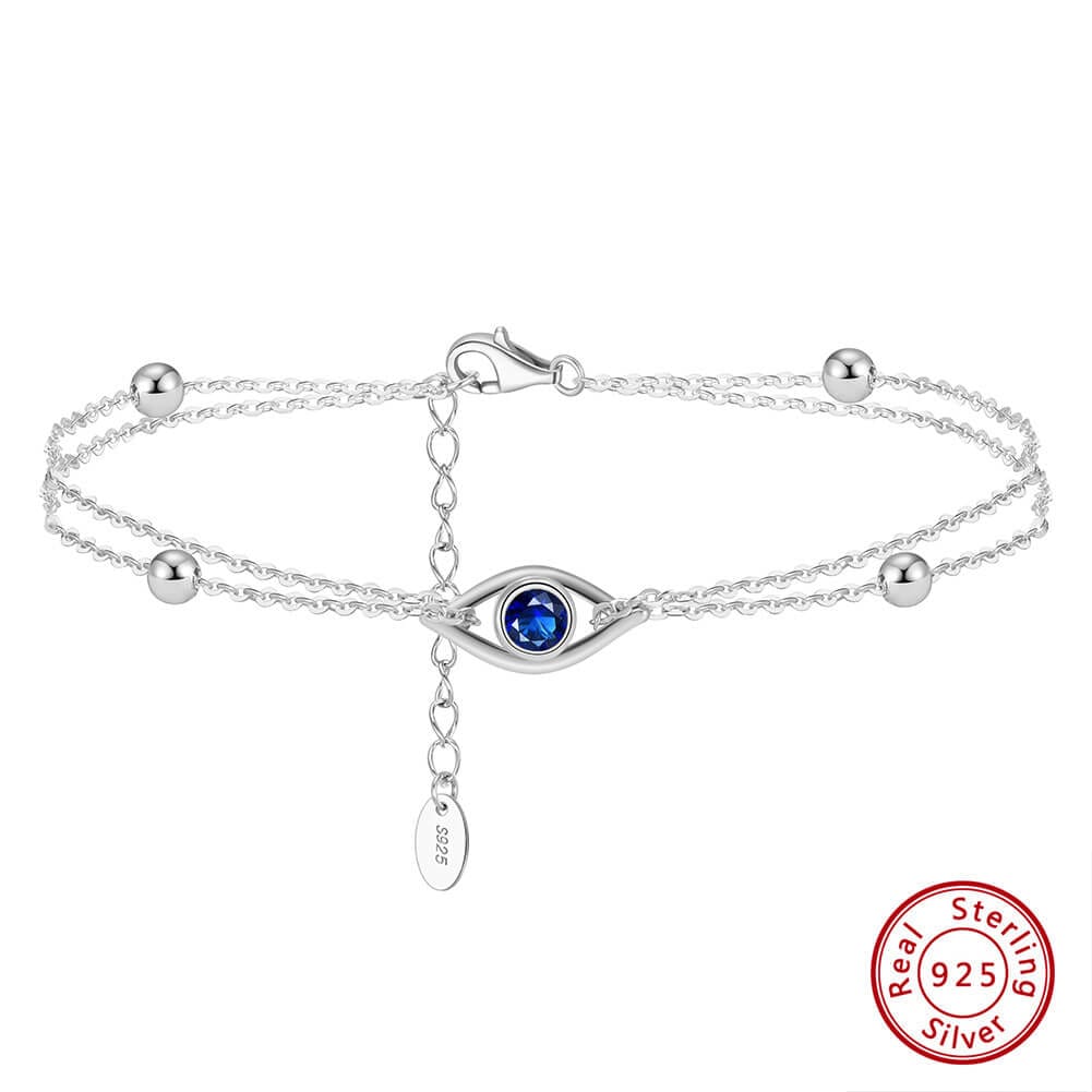 Double layers S925 Sterling Silver Evil Eye Bracelet