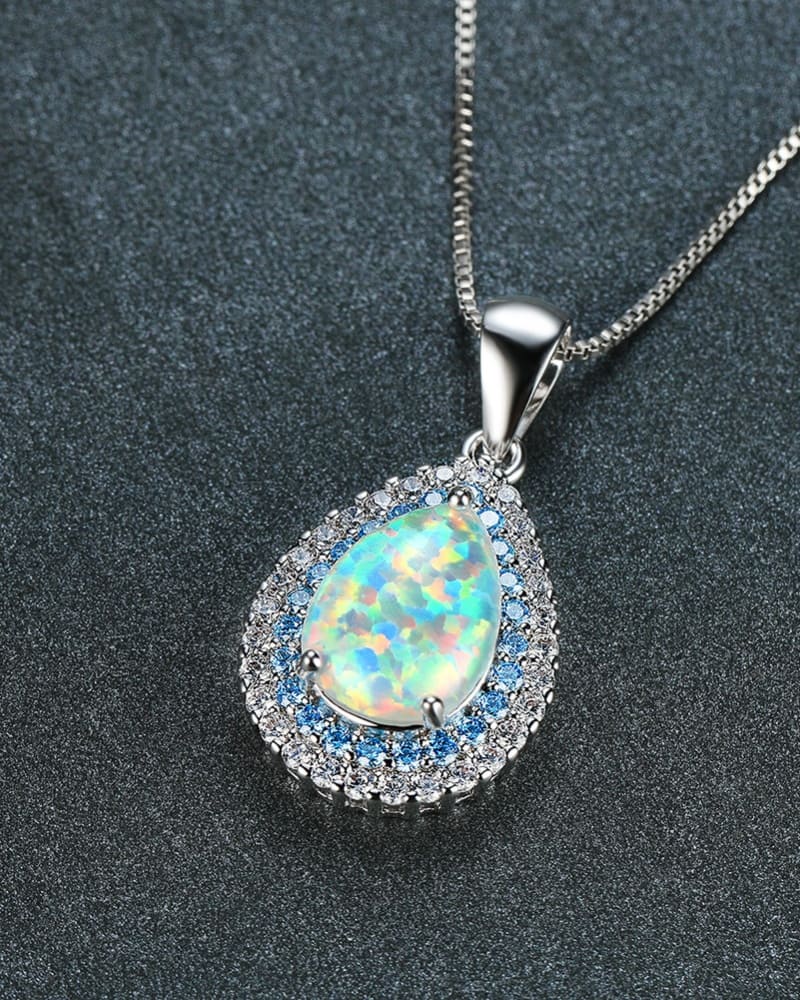 Luxury Teardrop October Birthstone Synthetic Opal Solitaire Necklace