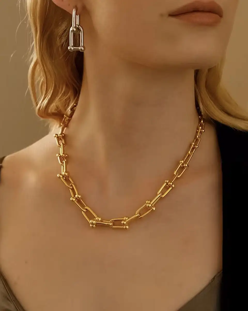 - Each link of this Stainless Steel Womens Chain features a U-shaped horseshoe clasp, transforming the symbol of luck into a daily companion! It pairs perfectly whether worn alone or layered with other necklaces.