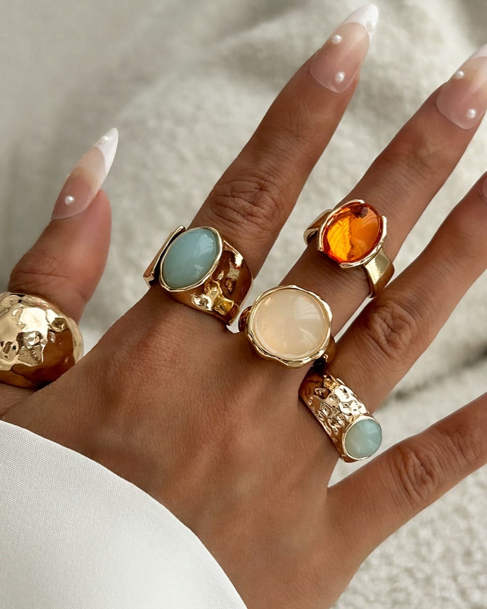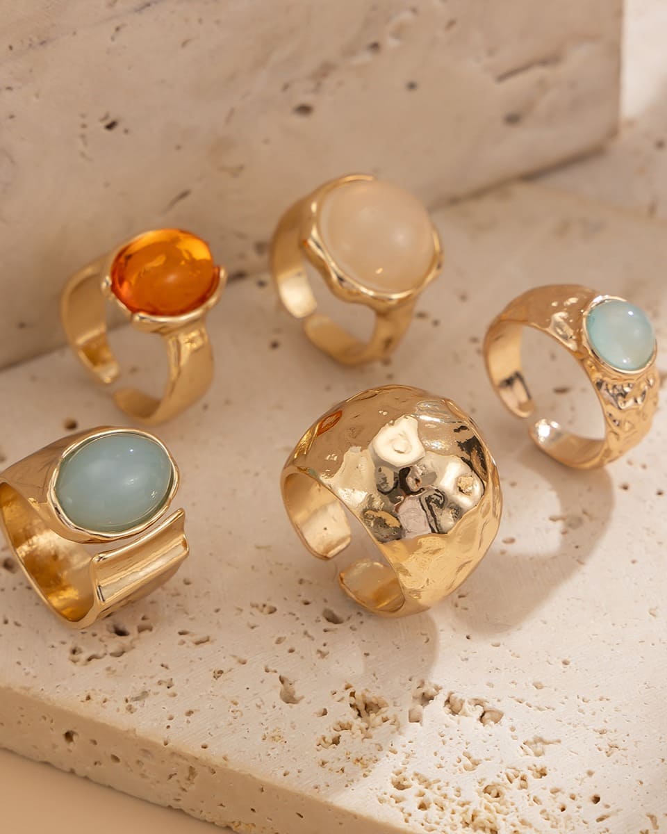 In daily life, even a simple shirt can instantly elevate your aura when you wear it. Pair the vintage chunky ring set with a bohemian dress, your unique aesthetics can also be highlighted