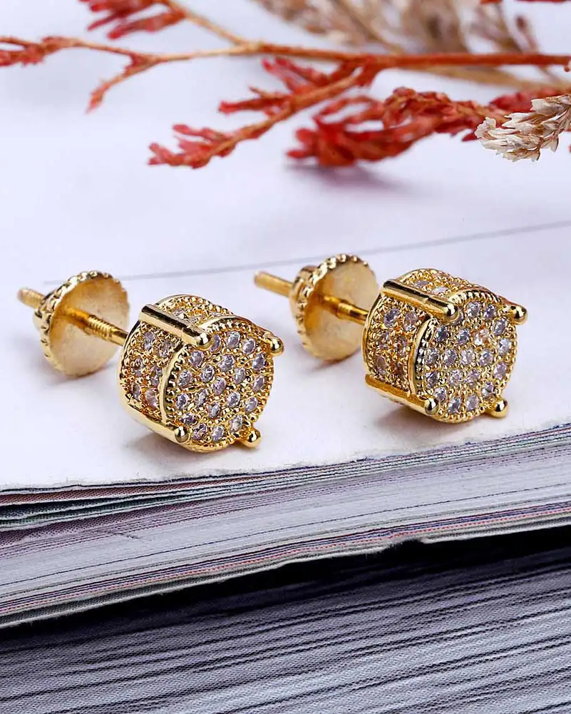 Gold Plated Zircon Vintage Round Earrings for Women Men