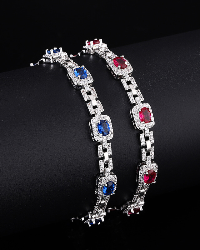 These oval gems catch every light with vibrant color and soft, brilliant sparkle — wrapping your wrist in a sense of grand opulence that makes a gentle but unforgettable statement.