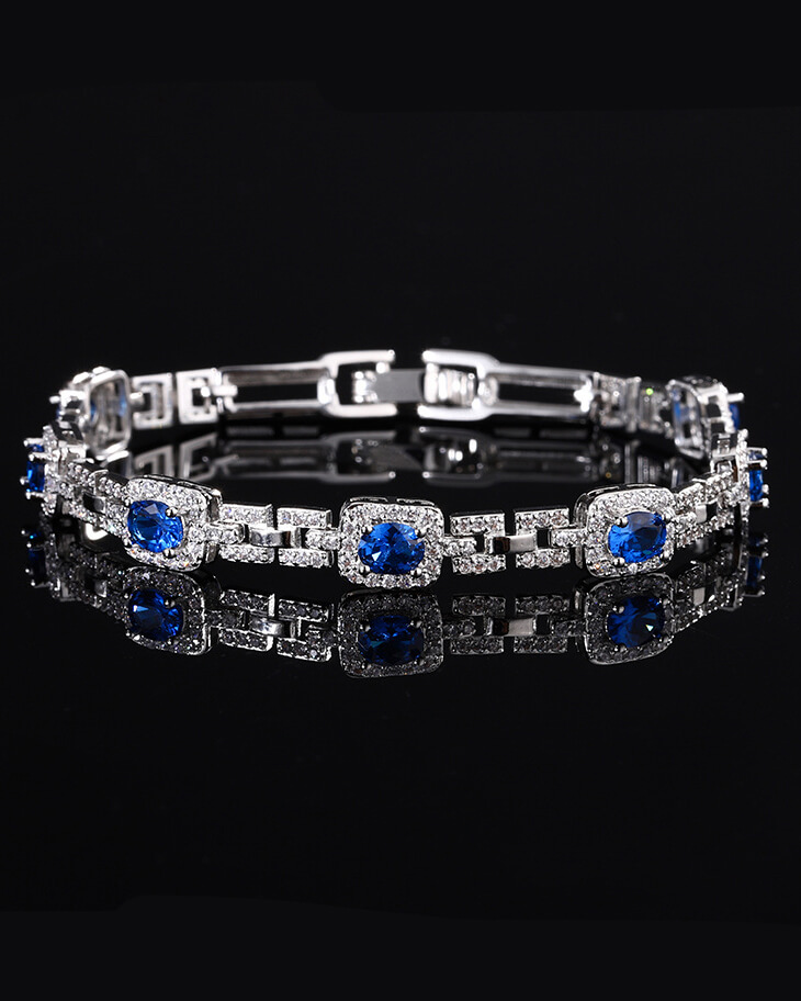 Sparkling 925 Silver Moissanite Diamond and Sapphire Tennis Bracelet Gift for Her