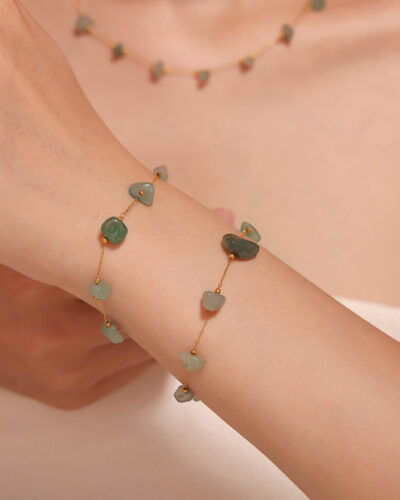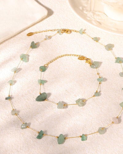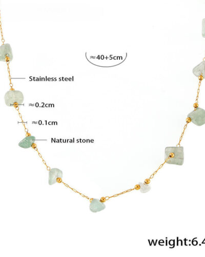 Colares com lascas de pedras preciosas naturais em aço inoxidável