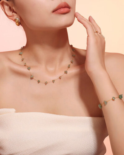 Item: Colares com lascas de pedras preciosas naturais em aço inoxidável