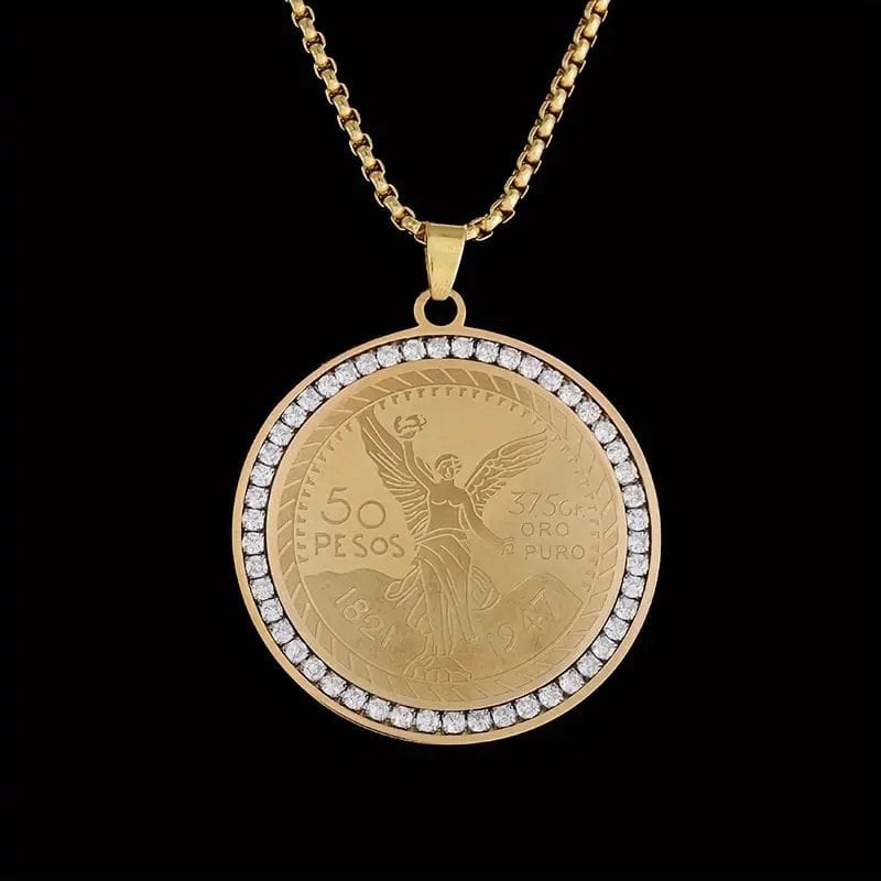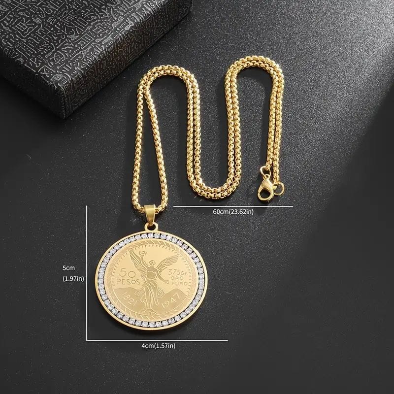 Colar de titânio masculino com pingente redondo da Estátua da Liberdade
