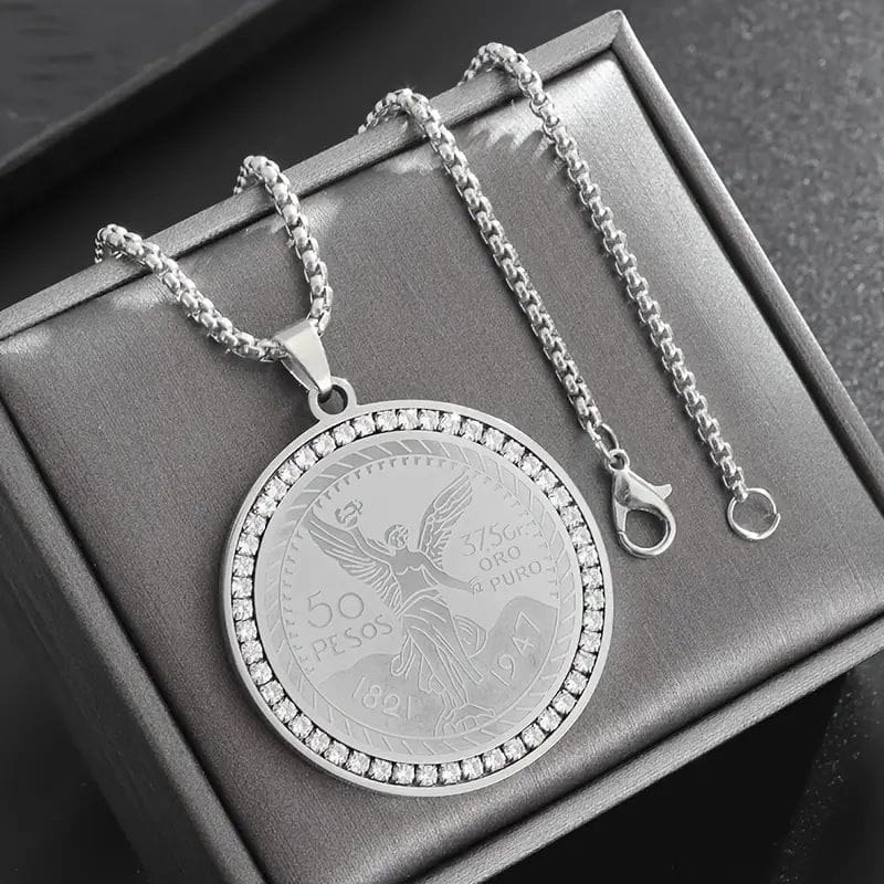 Mens Titanium Necklace with Statue of Liberty Round Pendant. The design concept is based on the Statue of Liberty, which is carved on the round pendant, full of personality. Made of titanium steel, it is light and tough, and there is no burden on the neck when wearing it.