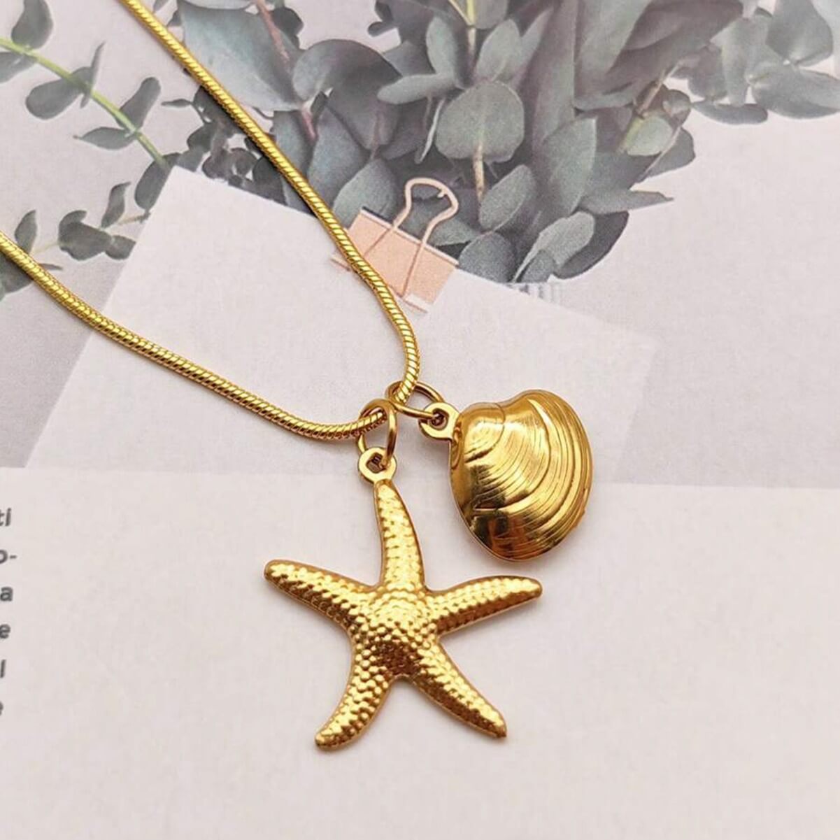 Colar de aço inoxidável Seastar banhado a ouro