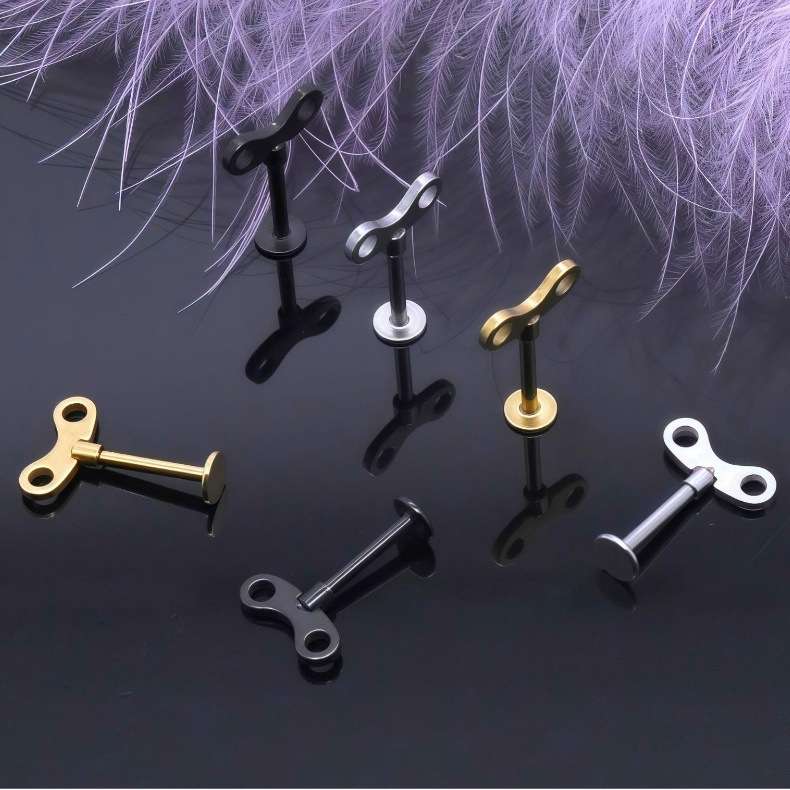 Crachá Labret em aço inoxidável. Confeccionado em aço inoxidável de alta qualidade, esse brinco labret em forma de chave de corda cria uma peça de joalheria vintage, de inspiração mecânica. Seu design exclusivo confere ao usuário uma personalidade distinta, garantindo que ele seja o centro das atenções em qualquer ocasião.