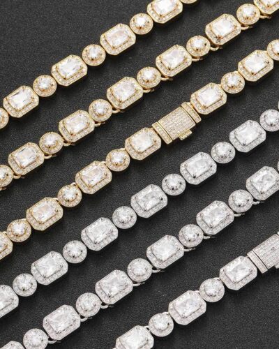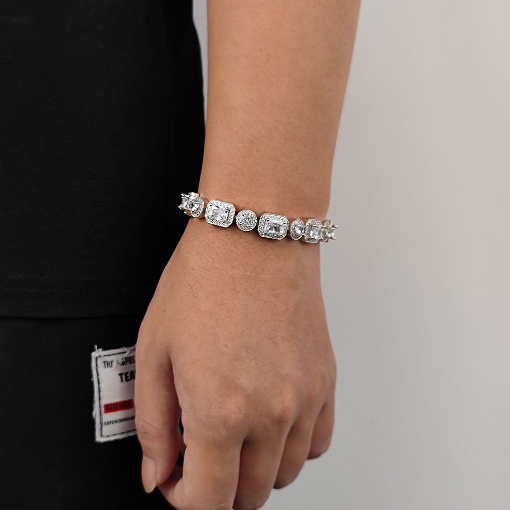 Wholesale 10mm Round and Square Setting Mens Zircon Bracelet! Innovative fusion of round and square zircon 💎, with widened design to show personality. Selected high-gloss zircon, shining like a diamond✨, does not easily fade when worn daily.