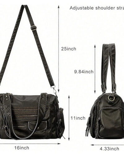 For the woman who craves bold style with uncompromising practicality, this black leather shoulder bag delivers.