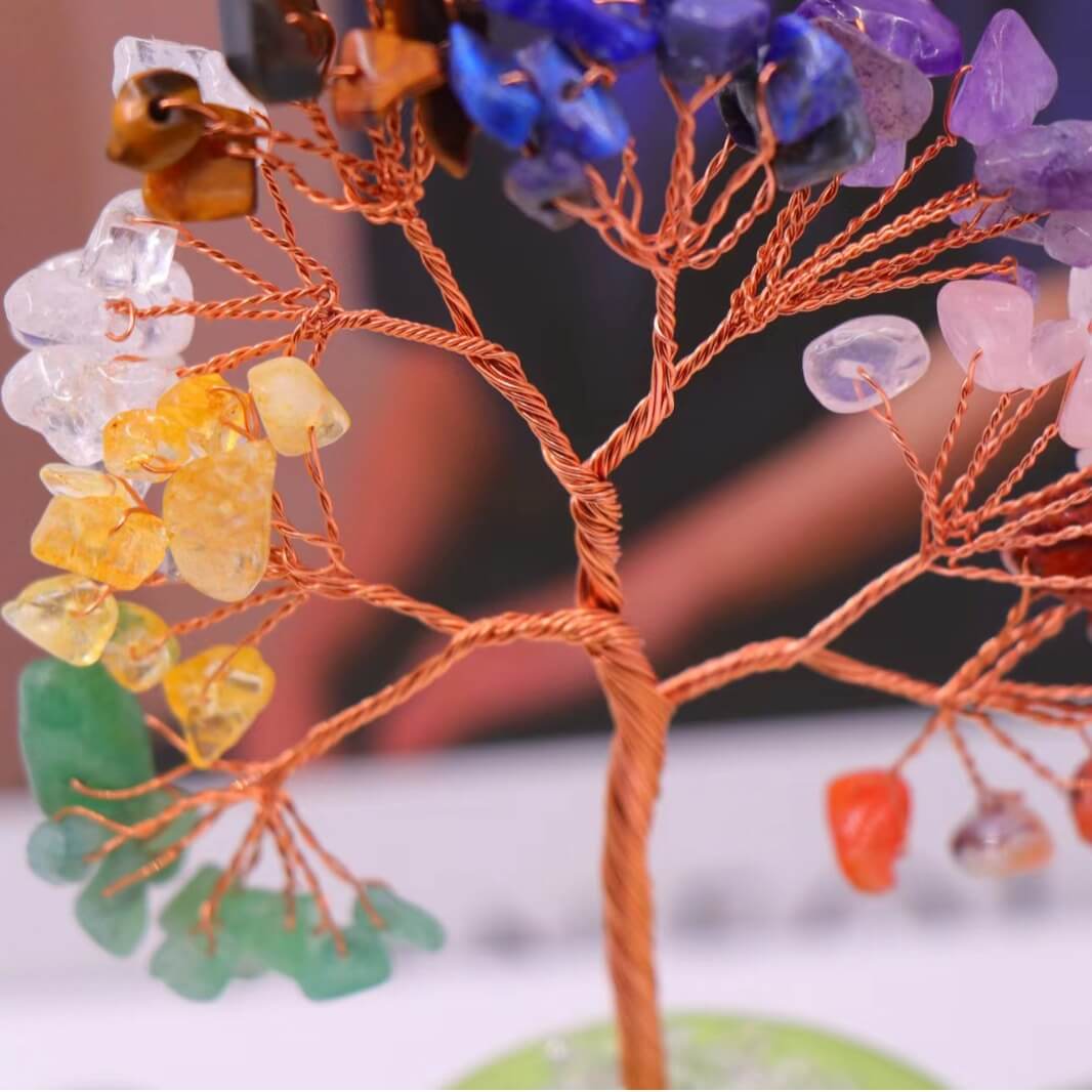 - Feng Shui Chakra Livets Träd Pengaträd med Chip Stenar Bas Bulk