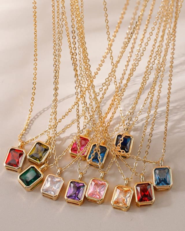 With classic square cut rhinestone pendants, this birth month necklace is a versatile and minimalist everyday jewelry for women of all ages. Different colored rhinestones represent different months, so you can choose one that matches your birth month.