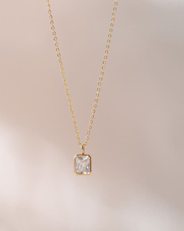 18K Gold Square Cut Rhinestone Personalized Birth Month Necklace