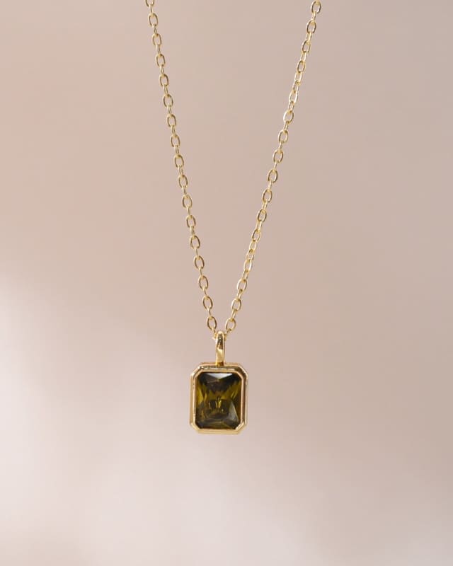 Emerald Cut Polaris Pendant Gold Vintage Birthstone Necklace