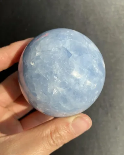 - Denna kristallkula i blå kalcit anses ha lugnande egenskaper. Om du placerar en bit i hemmet eller på kontoret kan du attrahera positiv kraft och ge dig lycka till.