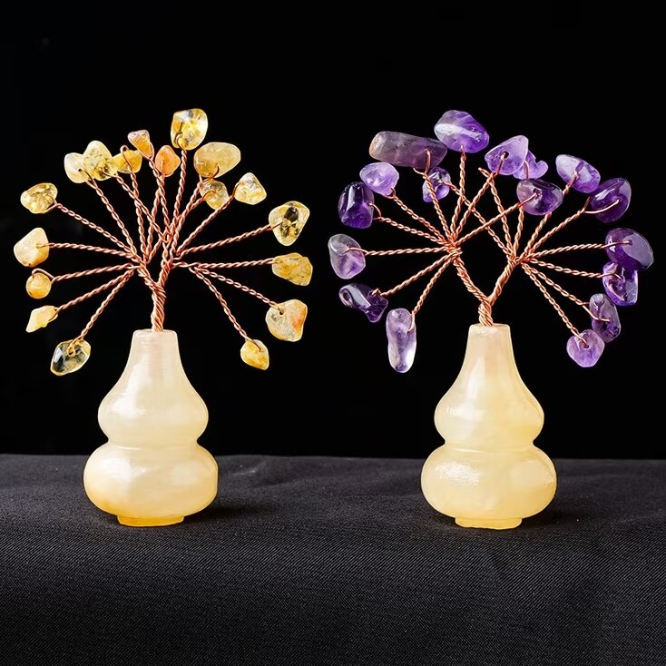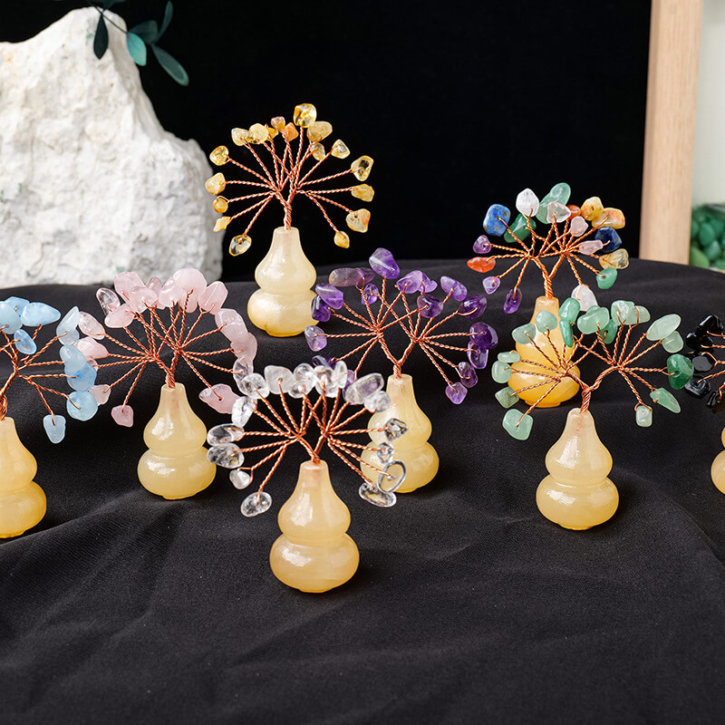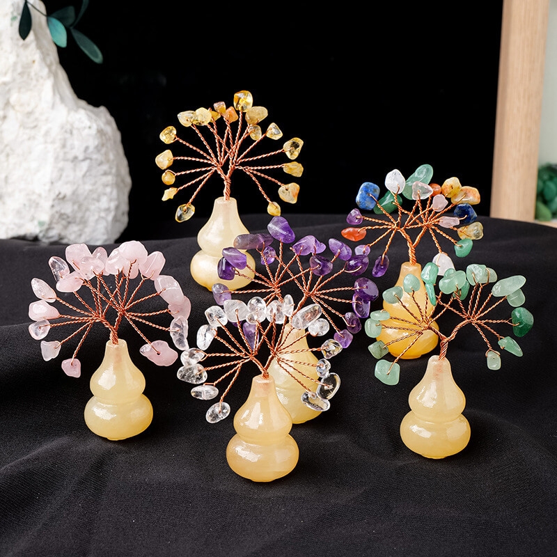 - Small Crystal Ornaments Tree Money Tree with Gourd-Shaped Base