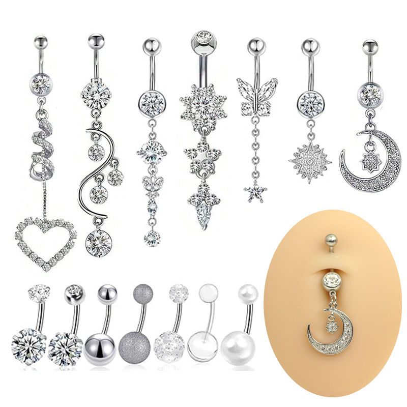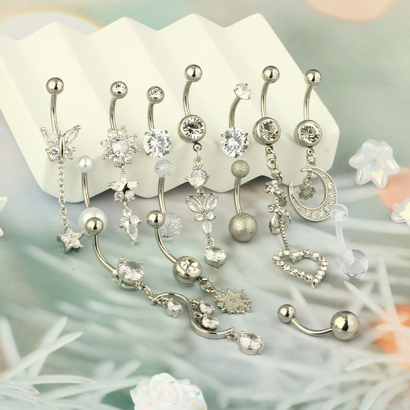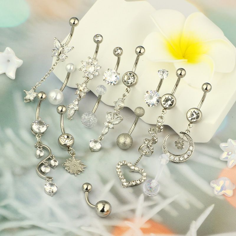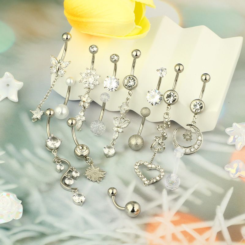 Stainless Steel Belly Button Piercing Dangle Set🌟. Made of high-quality stainless steel, it creates a fashionable belly button pendant combination! The pendant design is smart and shining, showing personality while swinging, and easily becoming the visual focus!