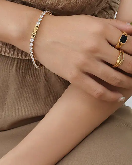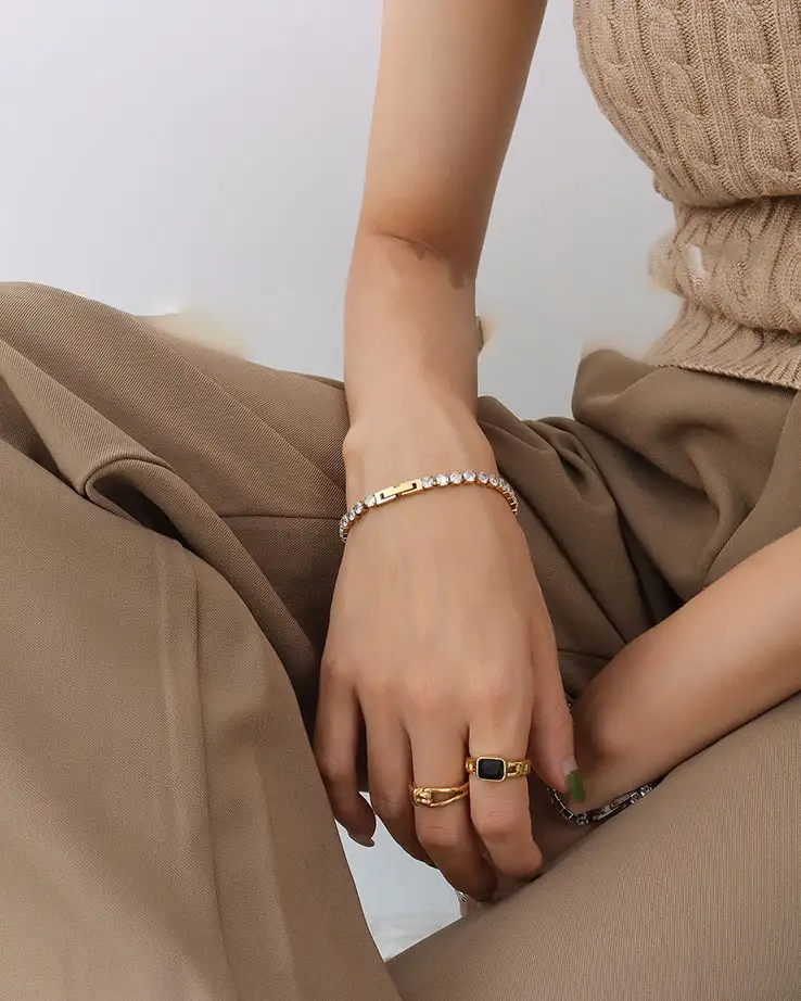 - This Stainless Steel Tennis Bracelet💎 features multiple sparkling zirconia stones that catch the light with every turn of your wrist. Crafted from premium materials, it offers scratch resistance and durability, ensuring comfortable wear over time.