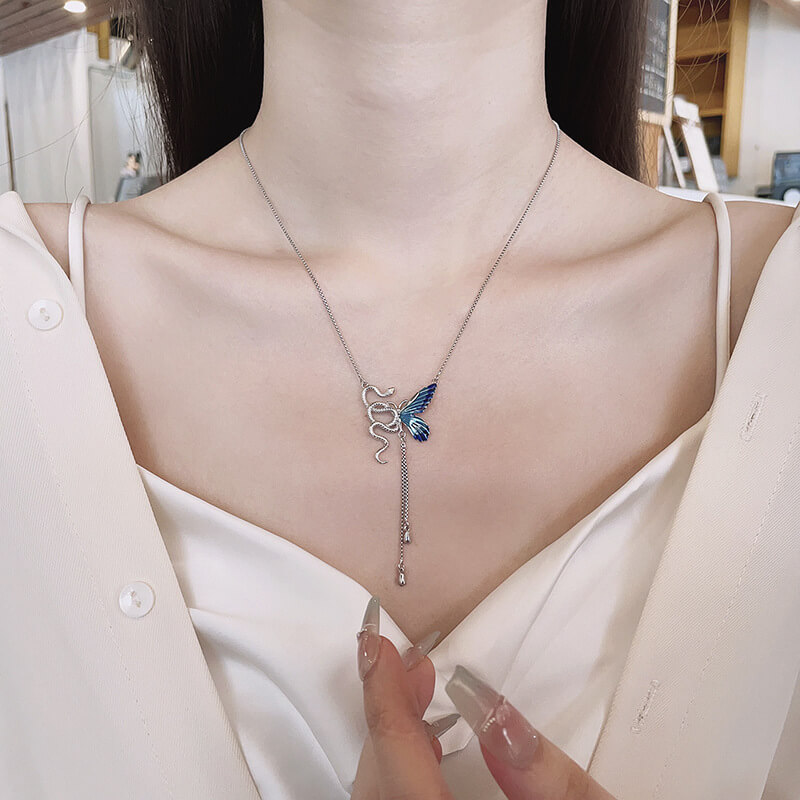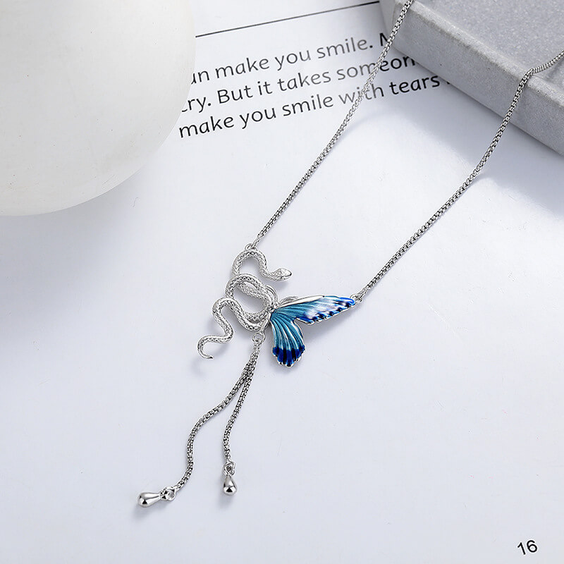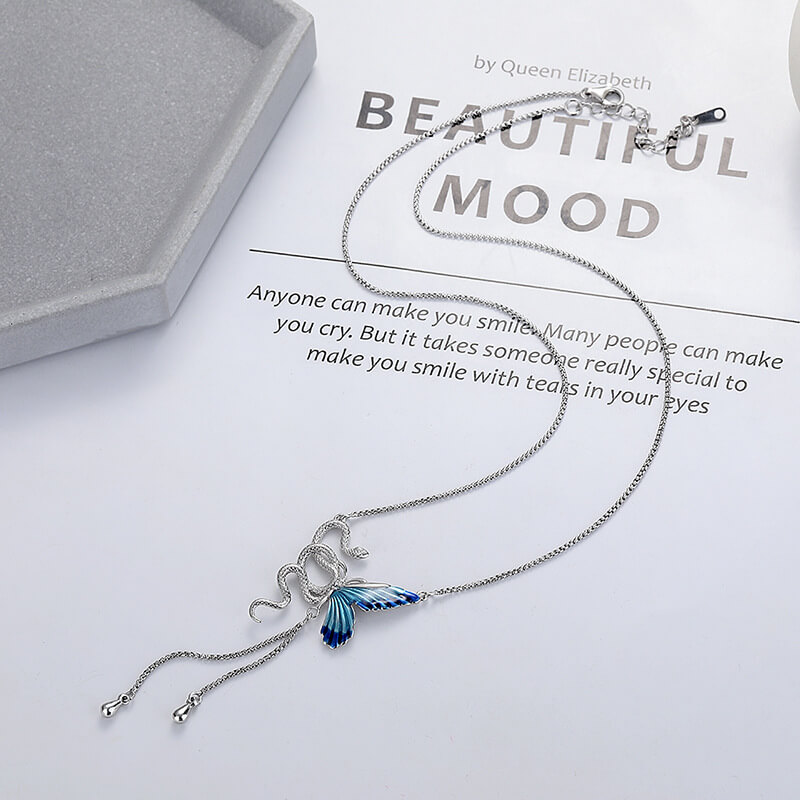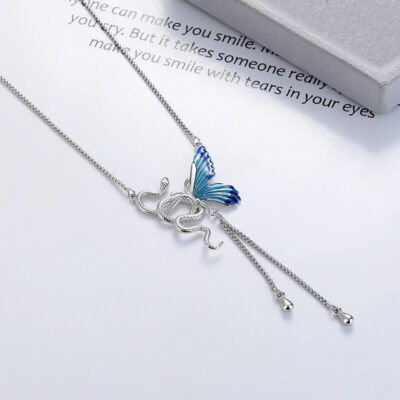 Sterling Silver Butterfly Hängsmycke Halsband med Halv Orm