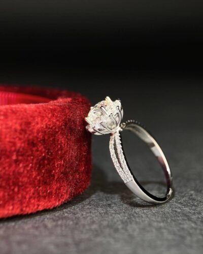 Yuvarlak Çiçek Tasarımlı 1ct Moissanite Nişan Yüzüğü