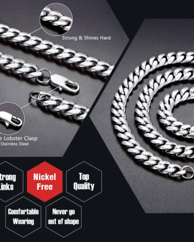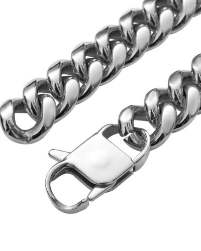 The end of stainless steel cuban link chain is designed of a durable lobster clasp, easy to wear and remove.