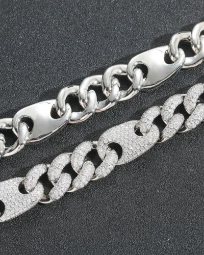 - This Cubic Zirconia Cuban Link Chain is quite unique. It is designed with a puffed Mariner to add a sense of difference to the usual Cuban link chain.