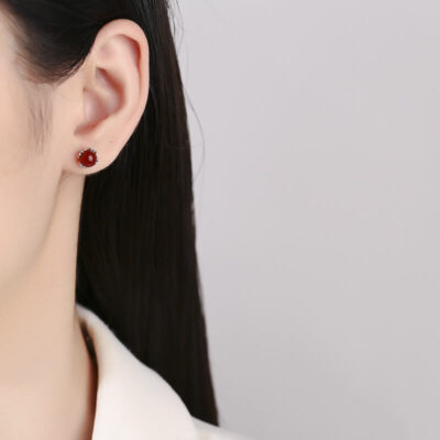 4mm S925 Gümüş Yuvarlak Akik Saplama Küpe Toptan Satış