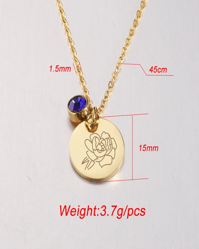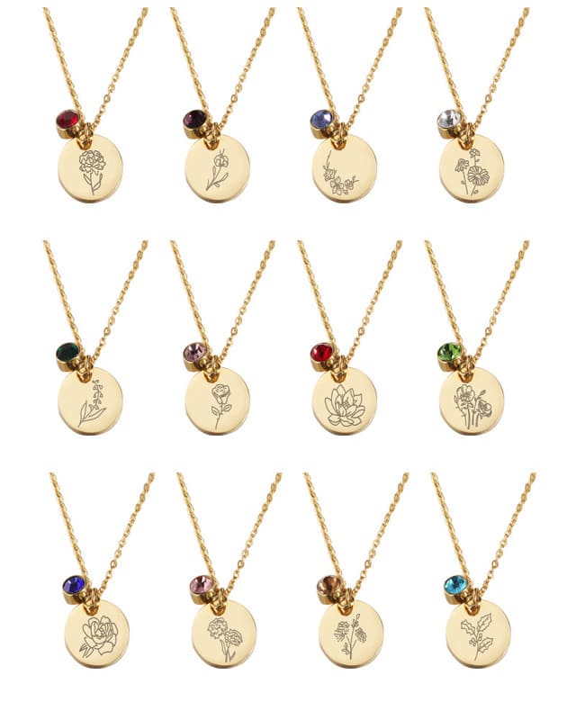Engraved with different types of flowers each month, this birthday month flower necklace reflects unique connotations and diverse wishes. Wearing the birthday flower necklace in daily life will bring the wearer good luck and positive energy.