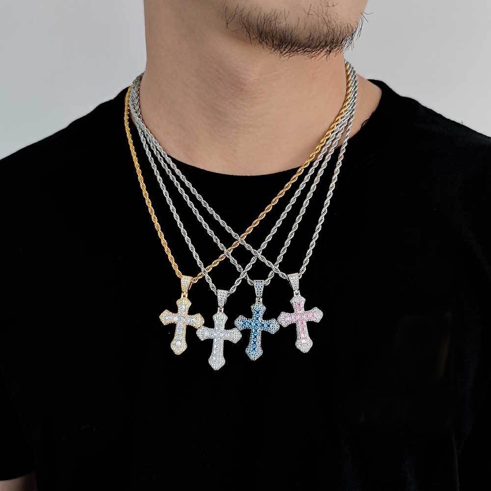 Copper Cross Pendant with AAA Zircon. The base is made of high-quality brass and inlaid with highly transparent AAA-grade zircon. High-quality zircon shines brightly, and faith and fashion coexist.