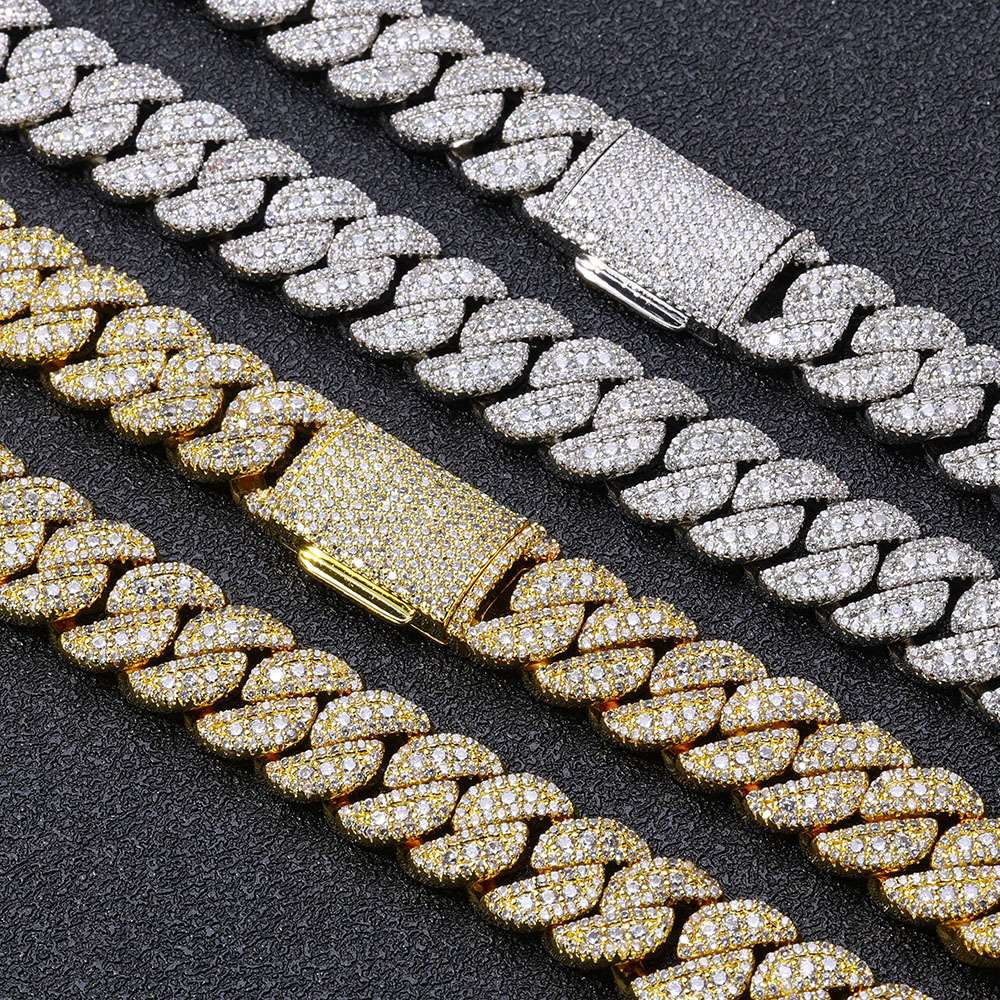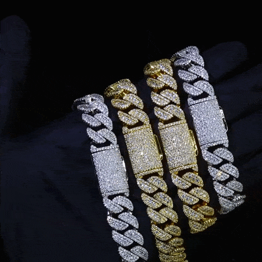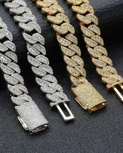 - This 5A Cuban Link Chain with Cubic Zirconia is made with brass and plated with gold, so it’s not easy to tarnish or fade.