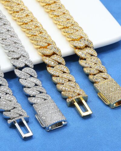 925 Ayar Gümüş VVS1 Moissanite Küba Baklalı Zincir Kolyeler Bilezikler
