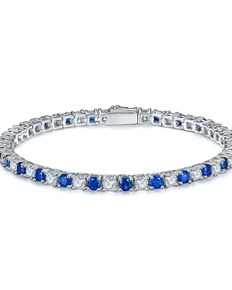 Sparkling 925 Silver Moissanite Diamond and Sapphire Tennis Bracelet Gift for Her