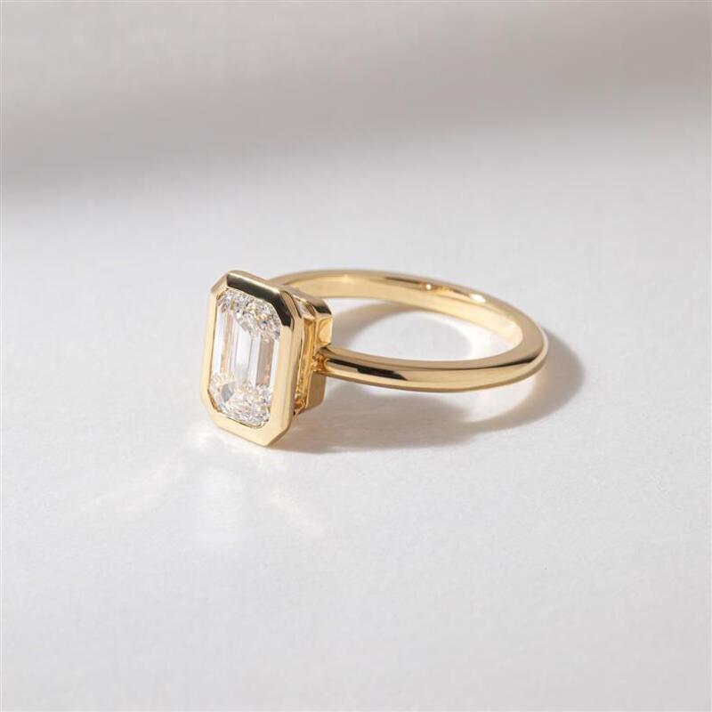 18K Altın Bezel Tasarım Zümrüt Kesim Lab Grown Nişan Yüzüğü