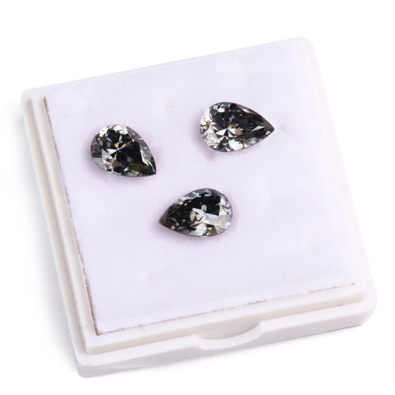 Wholesale Grey Pear Cut Moissanite Loose Stones. The smoky grey base exudes a metallic, matte luster, and the traditional pear-shaped cutting process lends it a more high-end appeal. Enjoy 8% discount on orders over $500 and a 15% discount on orders over $1,000!
