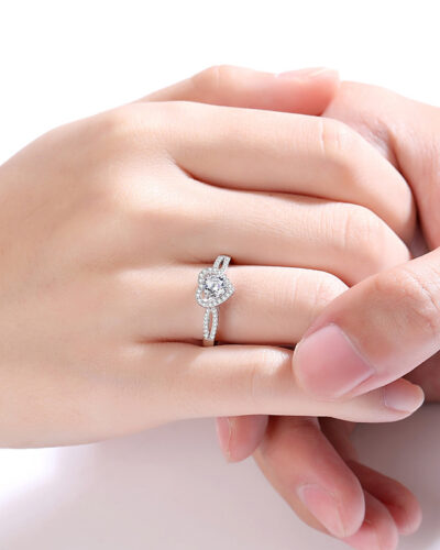 Heart shaped Moissanite engagement ring, featuring a high refractive index that brings a diamond-like sparkling luster, is more translucent and bright in sunlight. The ring is made of international standard sterling silver, which is oxidation-resistant and durable, keeping its luster as new for a long time.