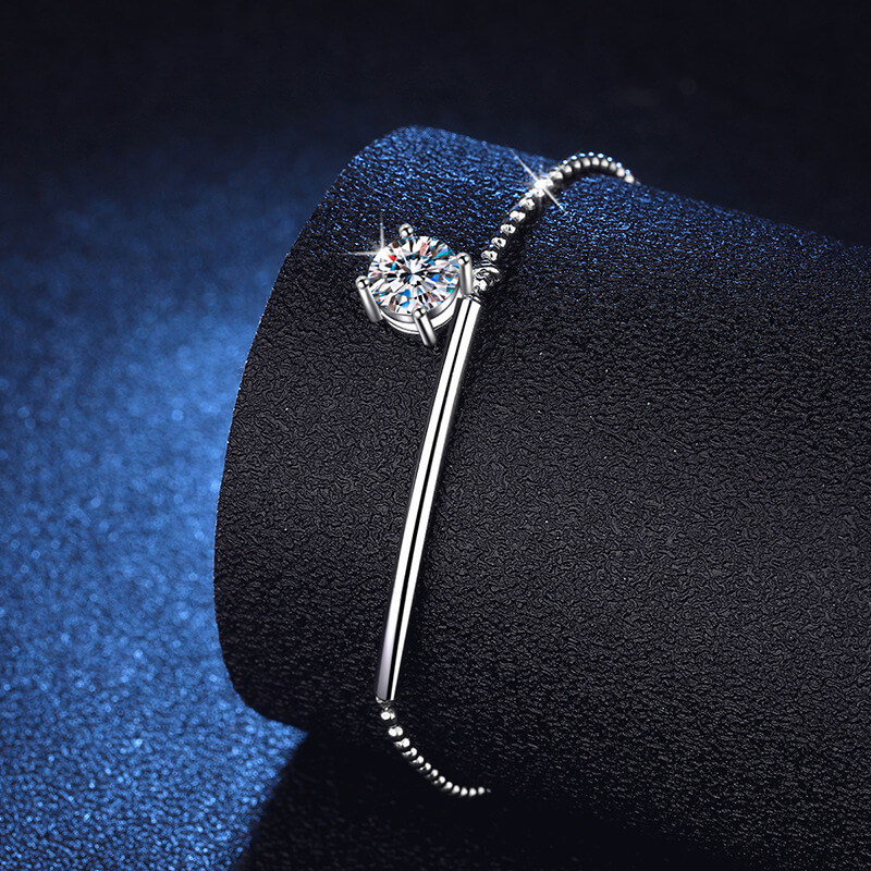 Kakma Yuvarlak Moissanite Bilezikler 925 Ayar Gümüş