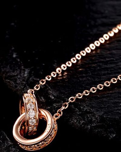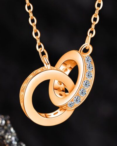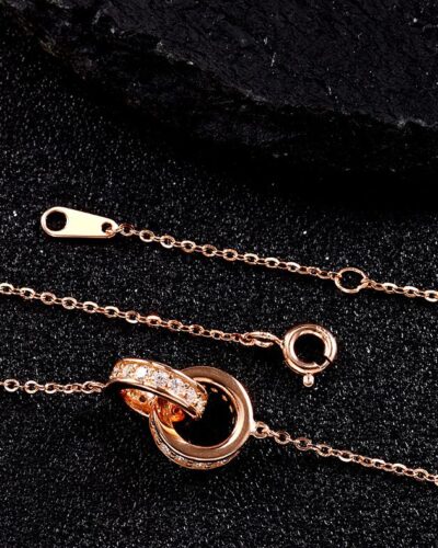 Interlinked Rings Moissanite Necklace with 925 Sterling Silver✨. The double-ring design symbolizes eternal love, and the rotation reflects the diamond-like light. There is no minimum order quantity, and you can enjoy wholesale prices regardless of the order size!