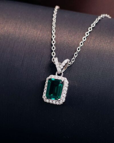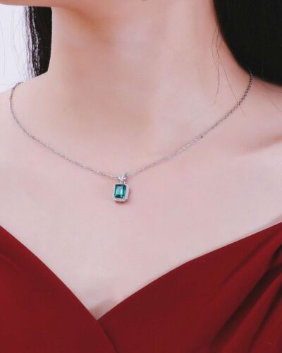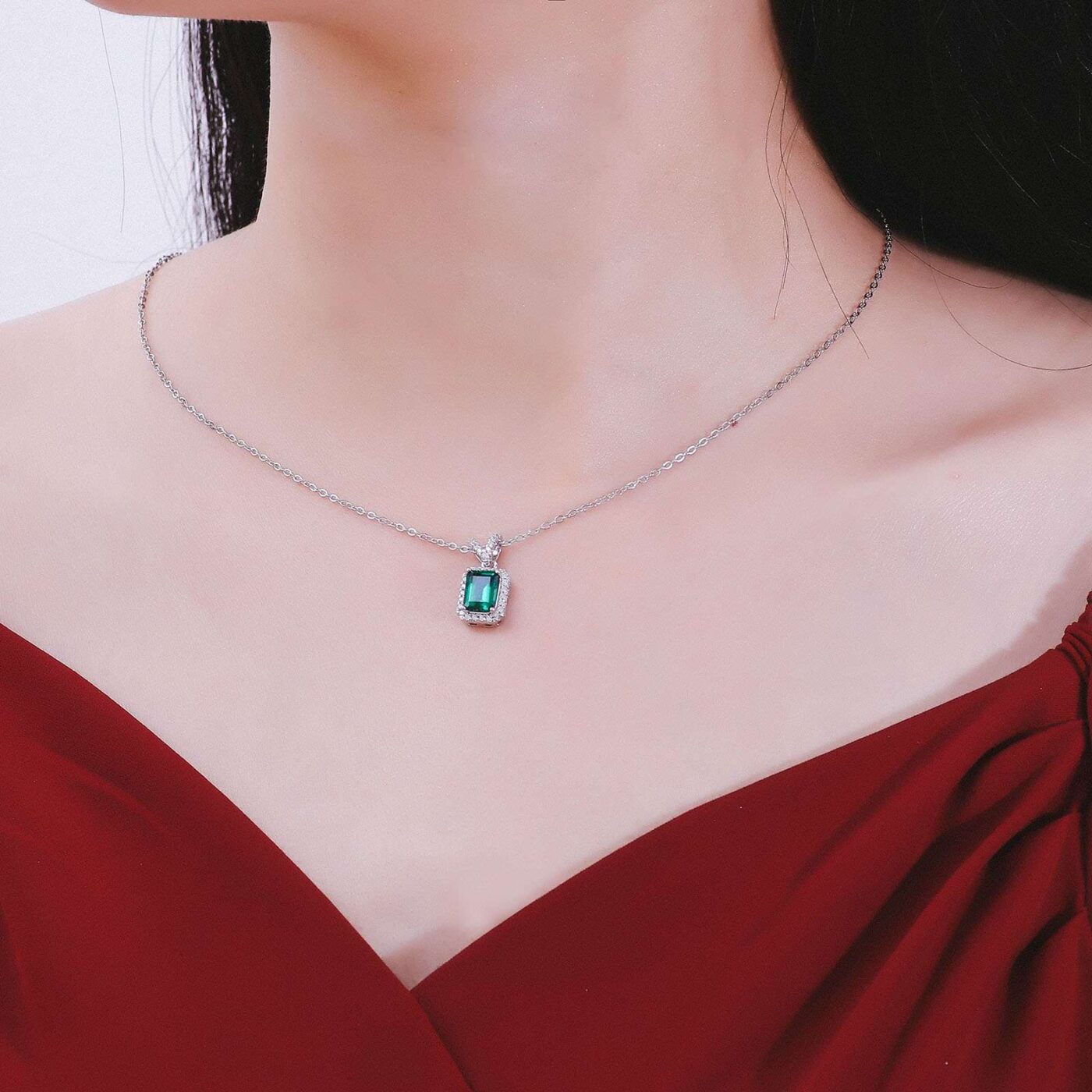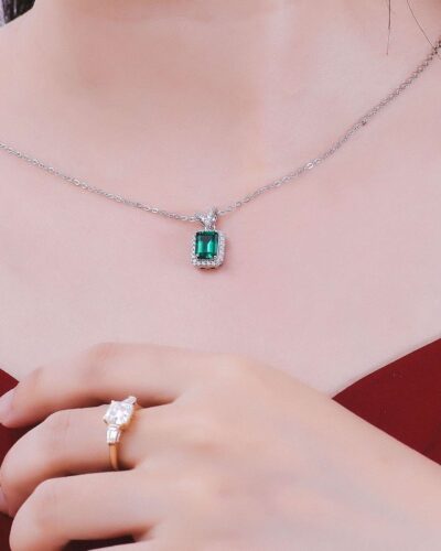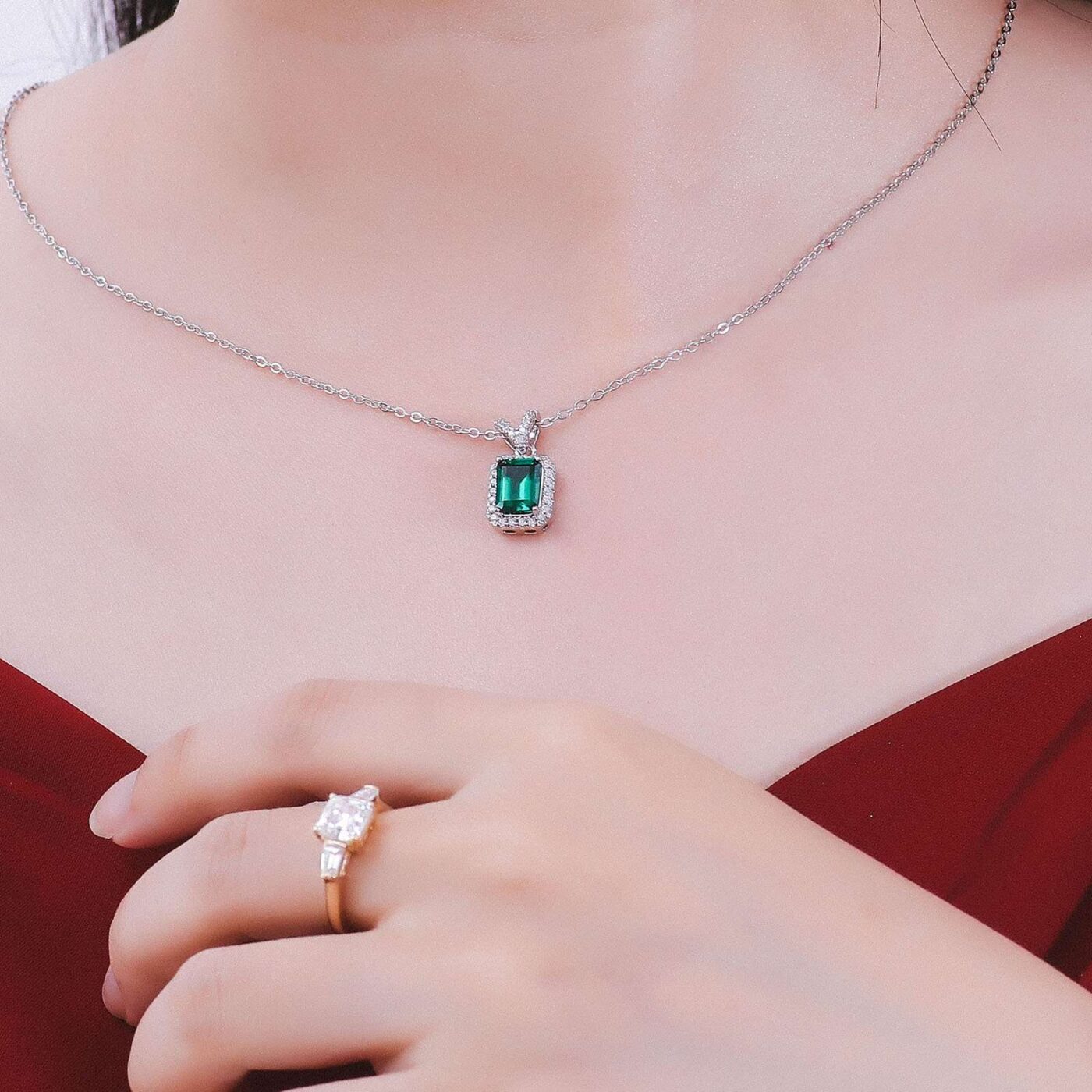 This 925 silver necklace is crafted from laboratory-grown emeralds. The exterior is plated with 18K gold, ensuring durability and gentle skin irritation.