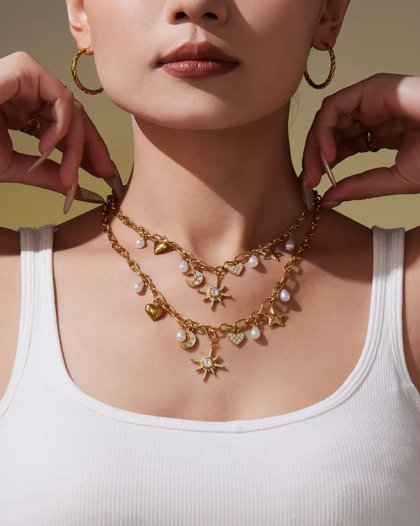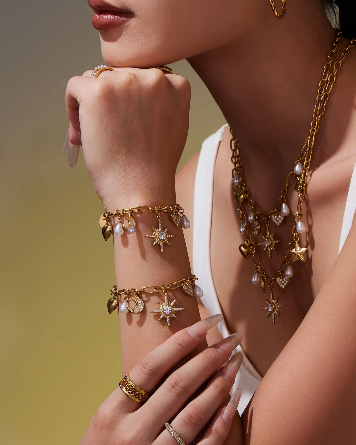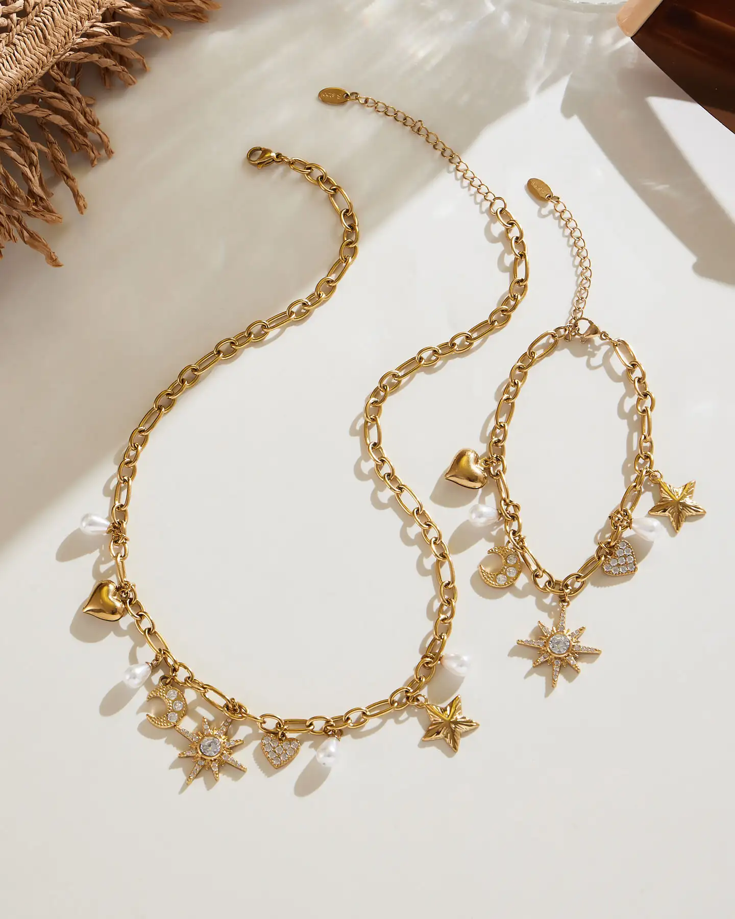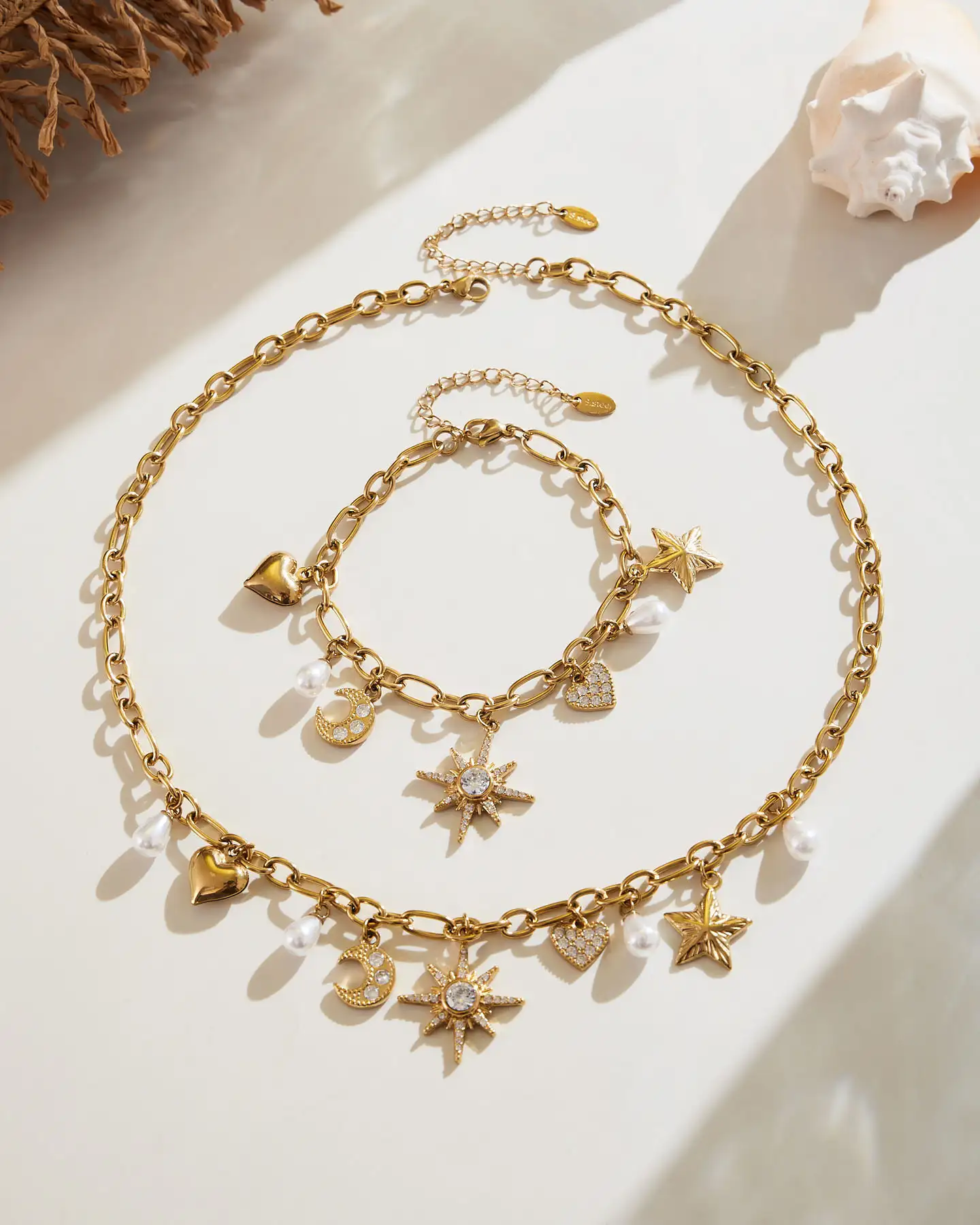 - This Ladies Stainless Steel Necklace combines star and moon elements to create a unique necklace and bracelet set. It complements any outfit with an elegant touch🌙⭐.