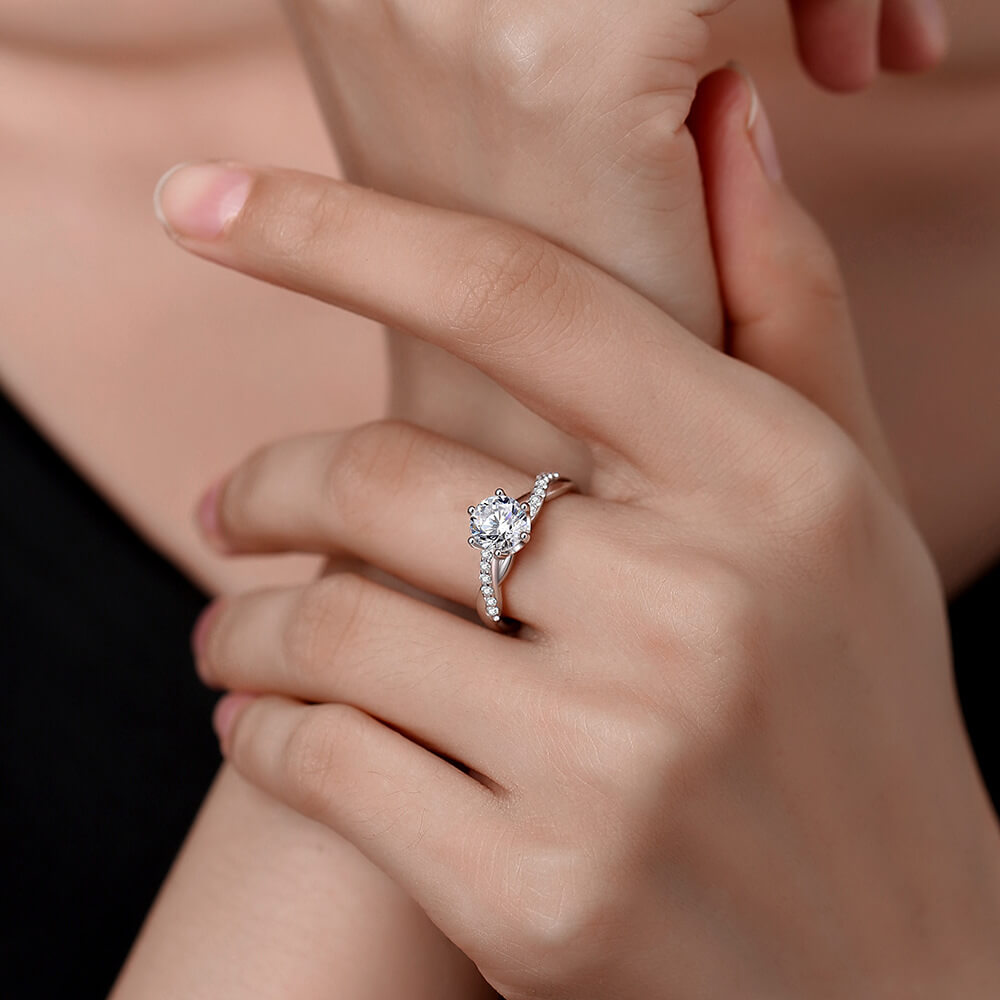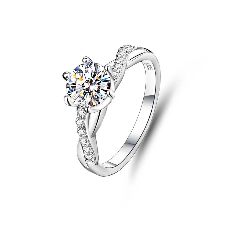 Bükülmüş Bantlı 1CT Moissanite Yüzük, 6 Çatallı Toptan Satış