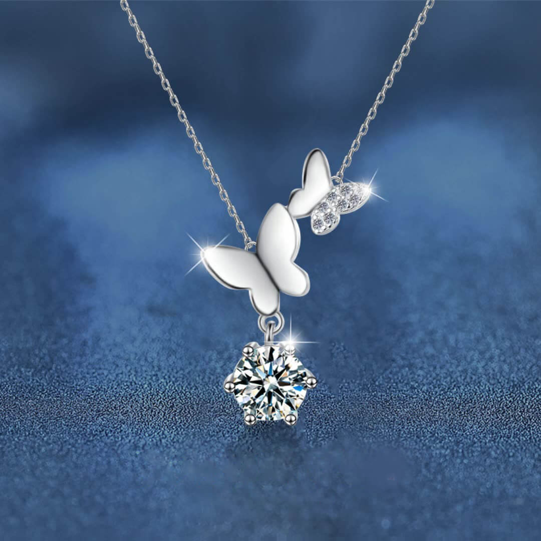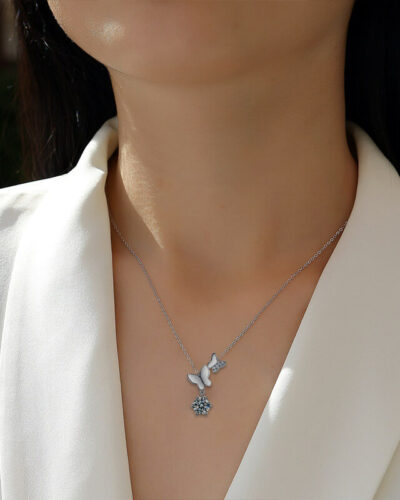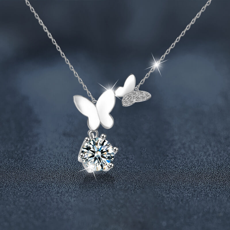 925 Sterling Silver Butterfly Moissanite Necklace 🦋 features a light and airy butterfly design with sparkling moissanite stones.